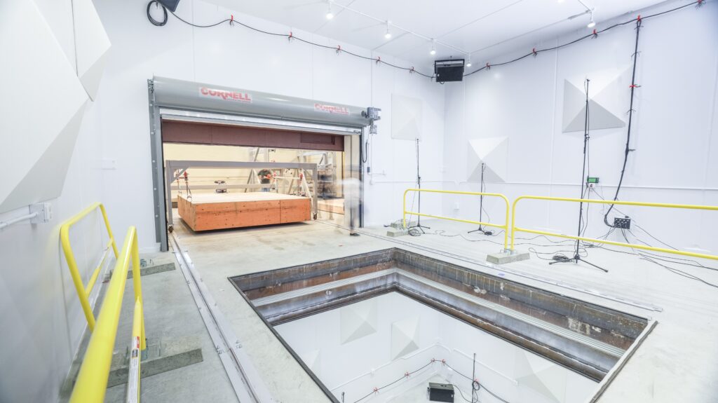 The Oregon Acoustic Research Laboratory (OARL) at the University of Oregon is a new world-class floor-ceiling testing facility set to open in 2027. The test chambers have been designed by Jerry Lilly to provide adequate modal density down to 50Hz and to provide exceptionally high flanking limits for both airborne and impact noise tests. OARL is part of a large innovation hub in Portland focused on supporting the expansion of the mass timber industry.